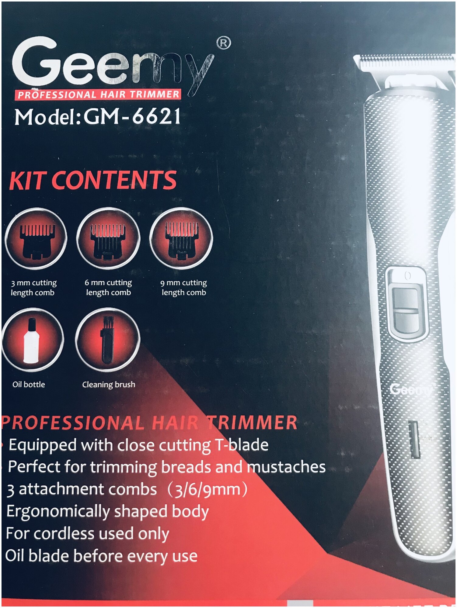 Ниже Вы можете прочитать отзывы на Машинка для волос PROFESSIONAL GEEMY GM-6621, ознакомится с подробными характеристиками, посмотреть интересные обзоры и фотографии на Машинка для волос PROFESSIONAL GEEMY GM-6621.