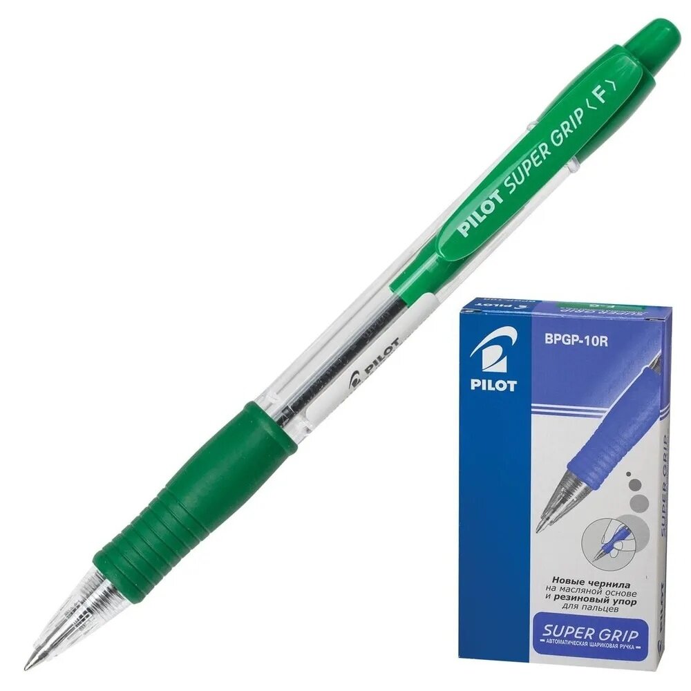 PILOT Ручка шариковая Super Grip, 0.7 мм BPGP-10R-F, зеленый цвет чернил, 1 шт.