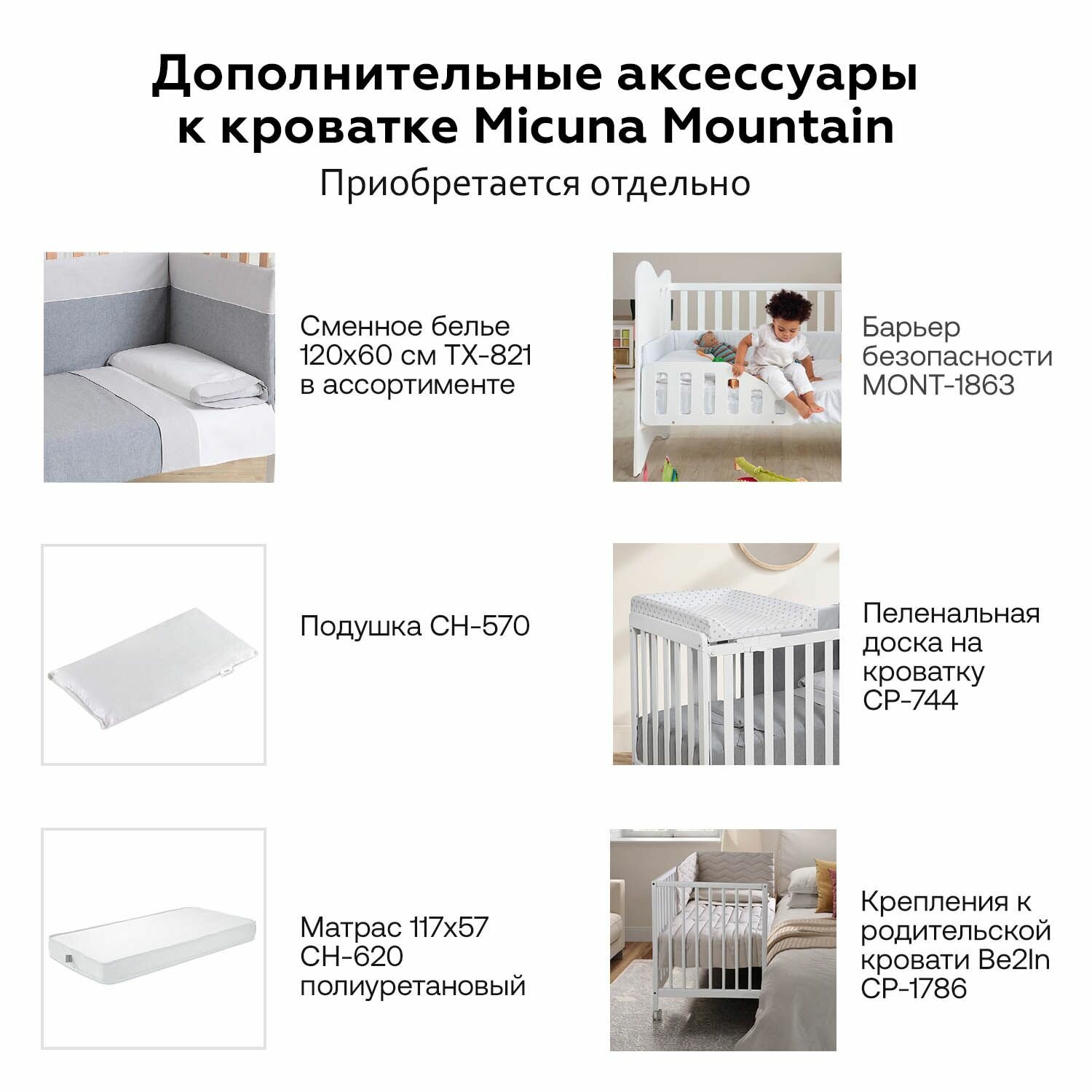| В комплекте | Кроватка Micuna Mountain 120х60 см 1 шт |
