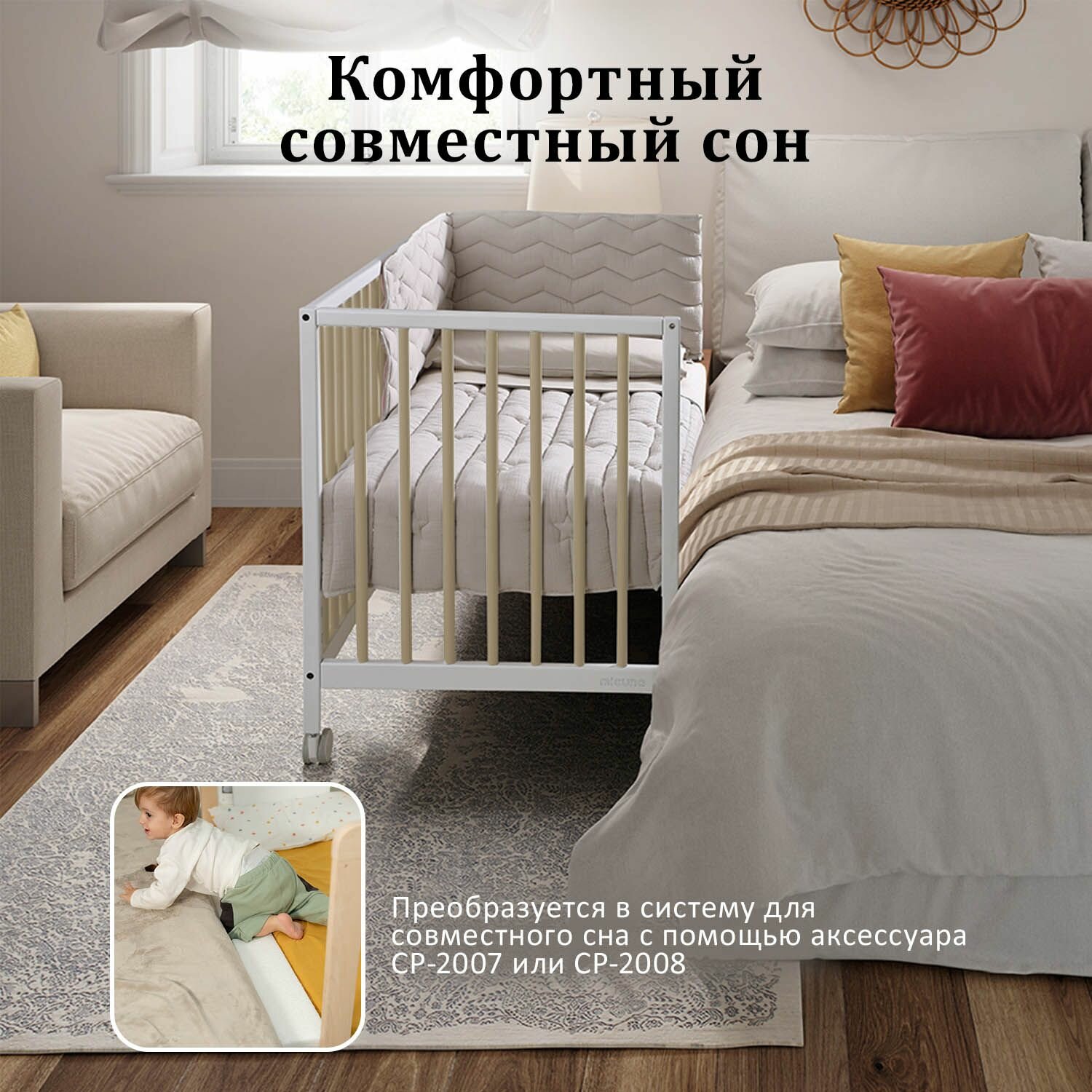 Кровать Micuna Mountain 120*60 white/natural wax интересное:
