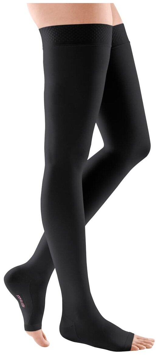 Чулки mediven comfort с открытым носком на широкое бедро, силиконовая резинка 1 класс CO169W Medi, 6, Черный, Стандартная