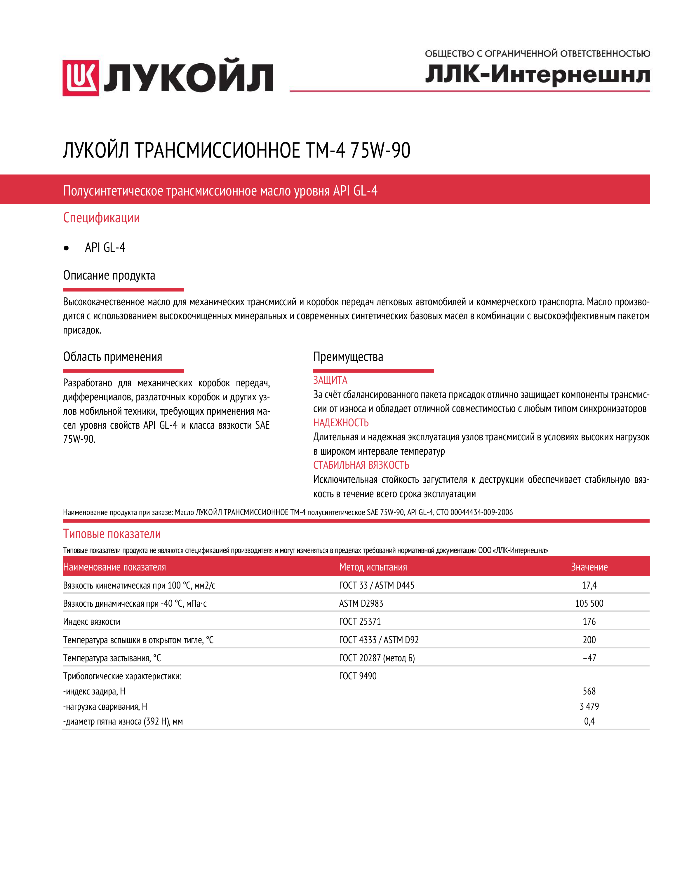 Лукойл Тм4 75w-90 П/С (4л) LUKOIL арт. 19532