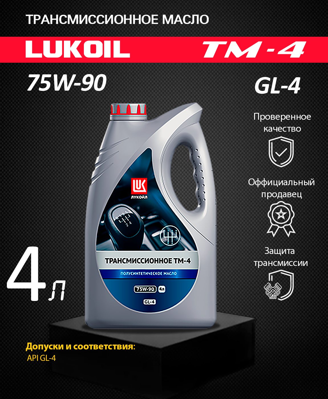 Лукойл / 19532 / 75W-90 ТМ-4 API GL-4 4л (полусинт. трансм. масло)