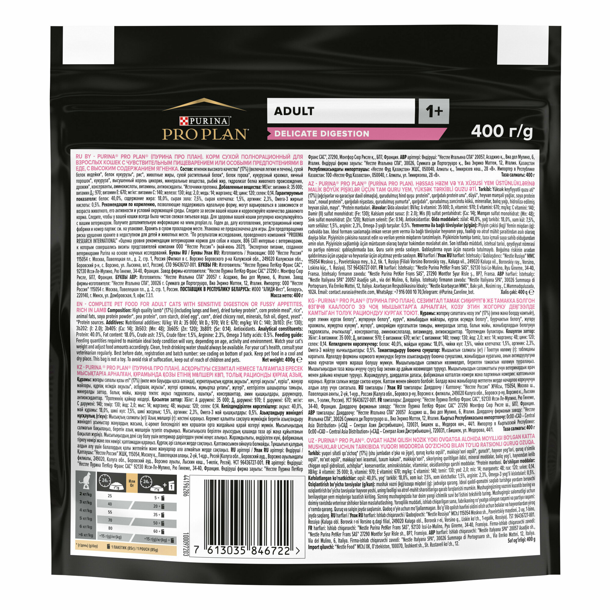 PRO PLAN DELICATE для взрослых кошек с чувствительным пищеварением, с ягненком 400гр