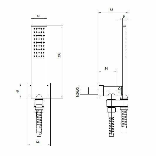 Комплект BOSSINI FLAT ONE: душевая лейка 1 тип струи, держатель с водорозеткой, шланг 1,5 м, хром. C13001C.030
