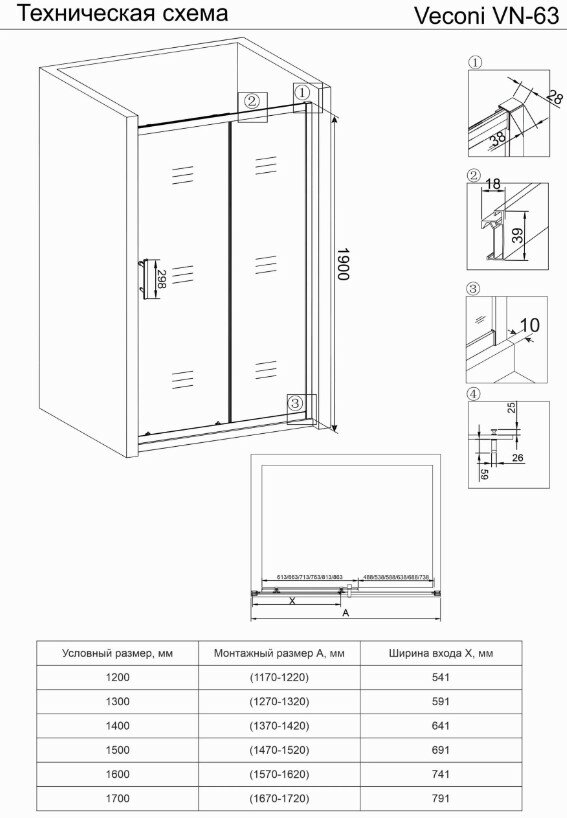 Душевая дверь Veconi Vianno VN-63 140x190 хром, стекло прозрачное интересное:
