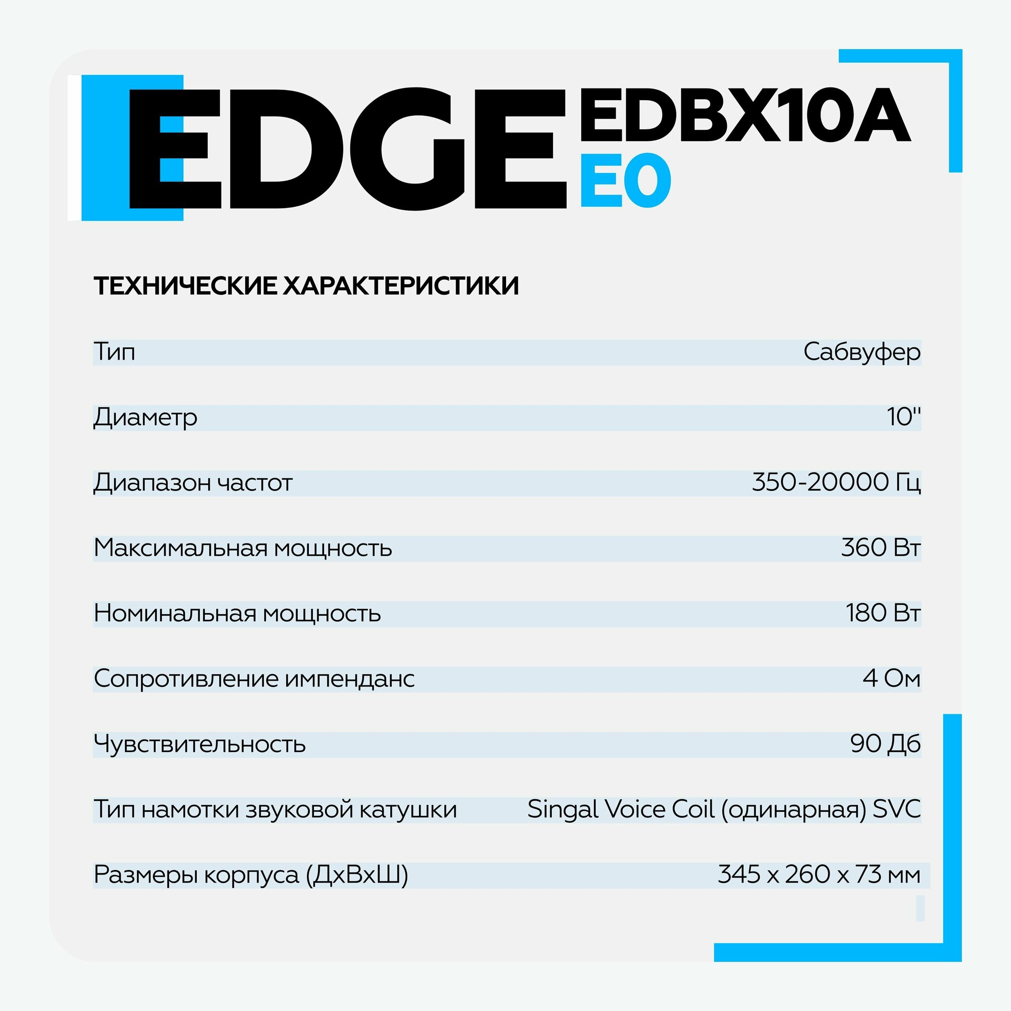 Сабвуфер автомобильный Edge EDBX10A-E0 180Вт активный (25см/10") EDBX10A-E0 .