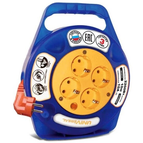 Удлинитель Universal в закрыт. корпусе 4х10м с заземл. 6А IP20 У10-015 термо ПВС 3х0.75 защ. шторки, 1671 интересное: