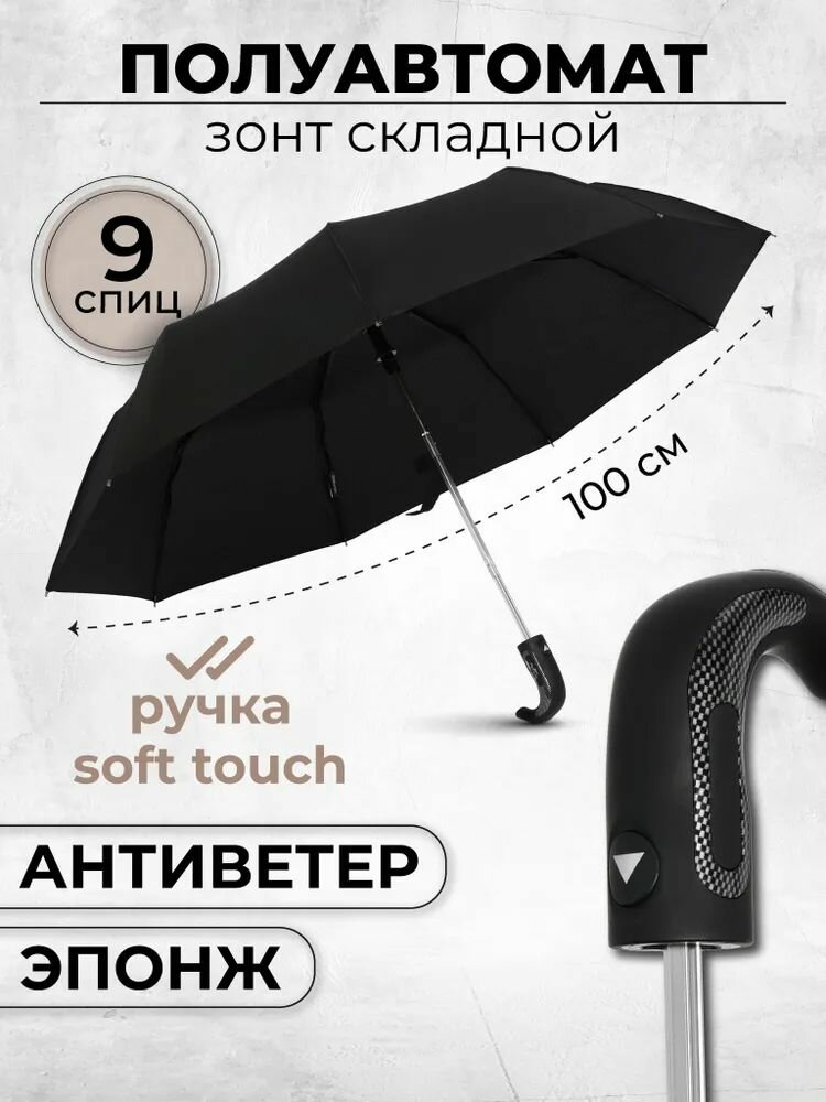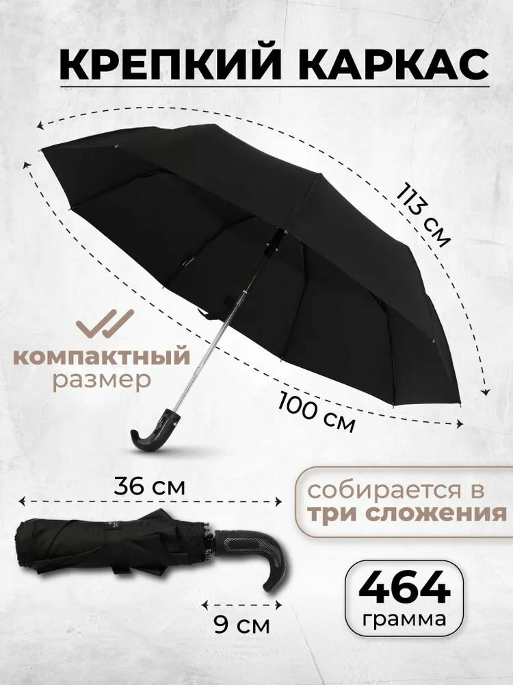 Мужской зонт складной 3 сложения, полуавтомат