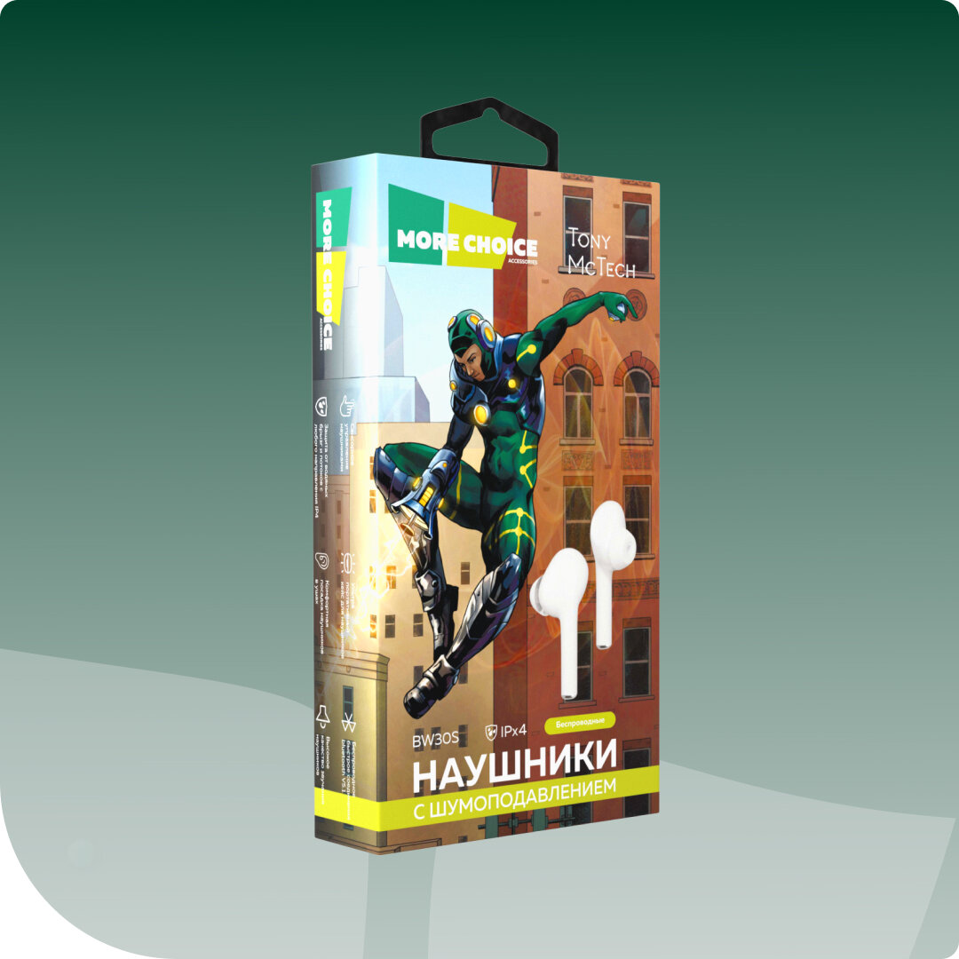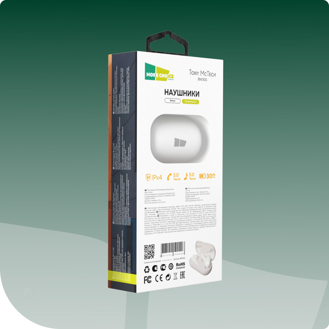 Беспроводные BLUETOOTH наушники More choice BW30S white TWS Smart вакуумные