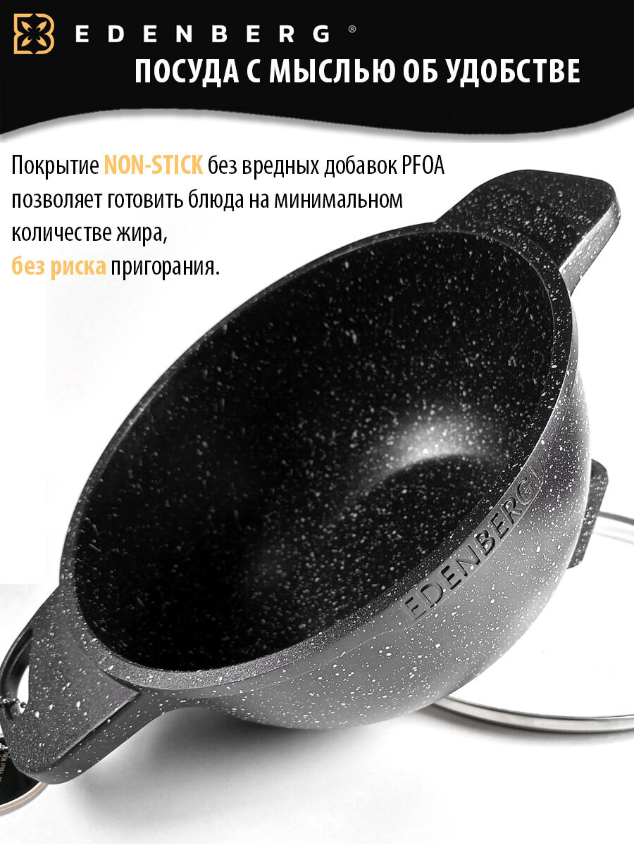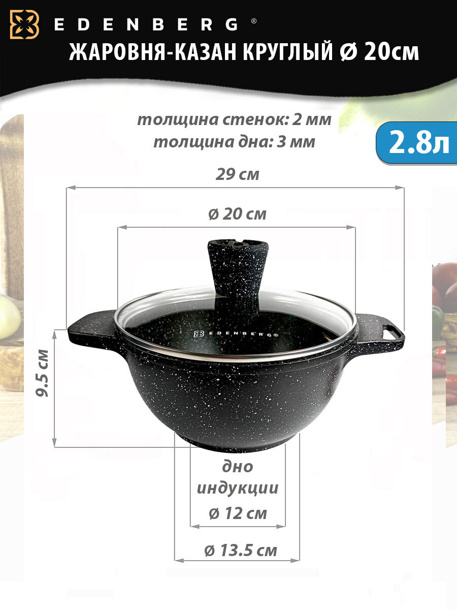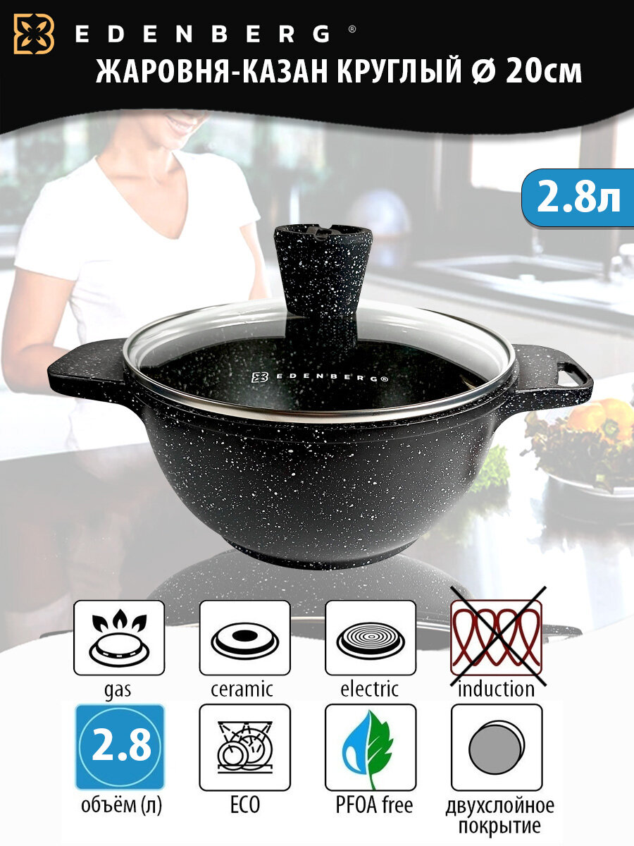 Казан Edenberg из литого алюминия с гранитным покрытием 2,8л для всех видов плит / Сотейник / Жаровня интересное: