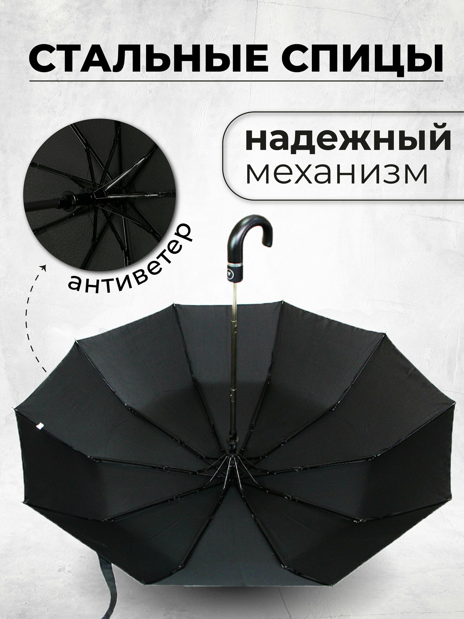 Зонт мужской полуавтомат, зонтик женский складной антиветер 1083LN, черный интересное: