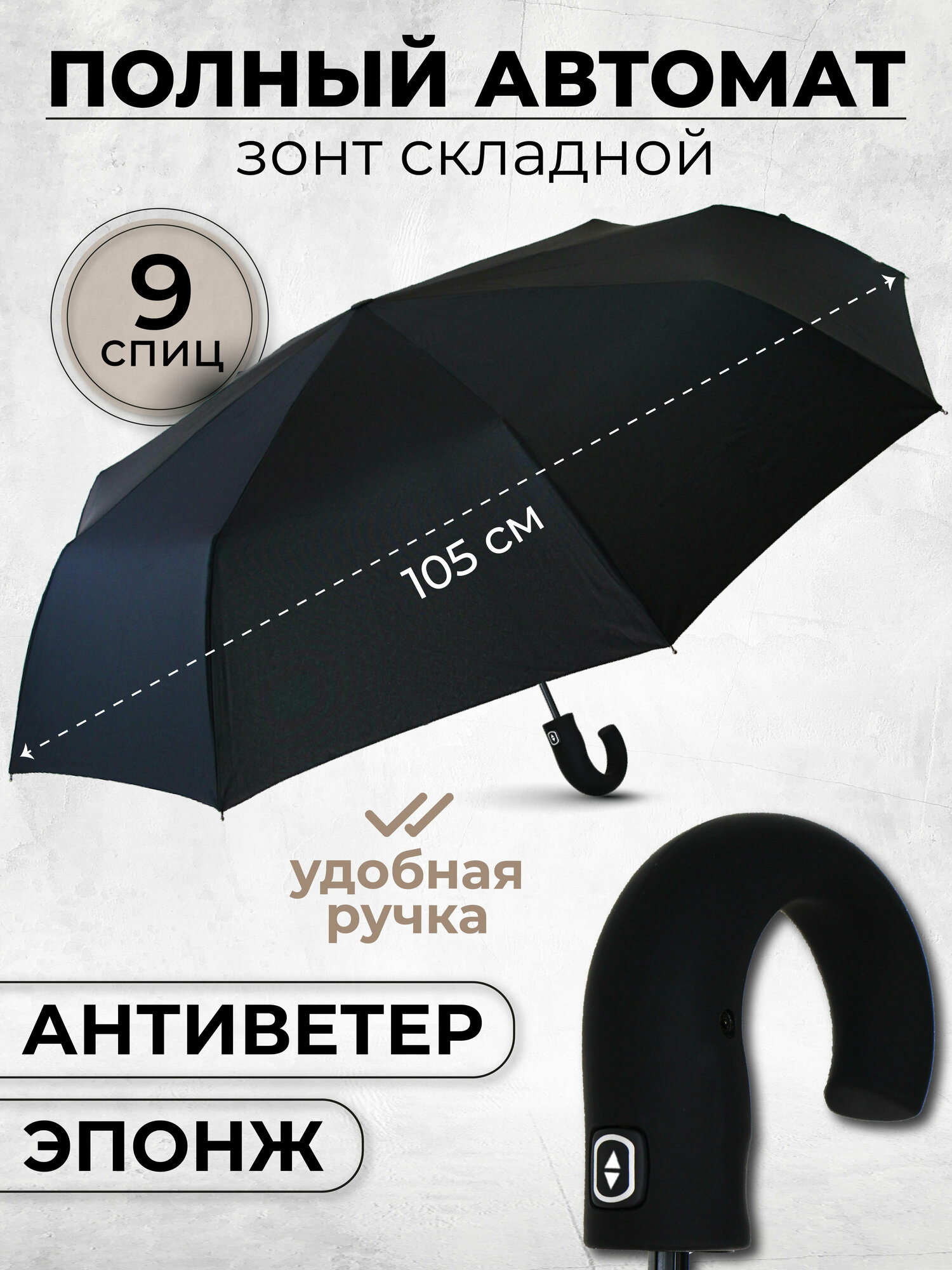 Зонт мужской автомат, зонтик женский складной антиветер L902, черный интересное: