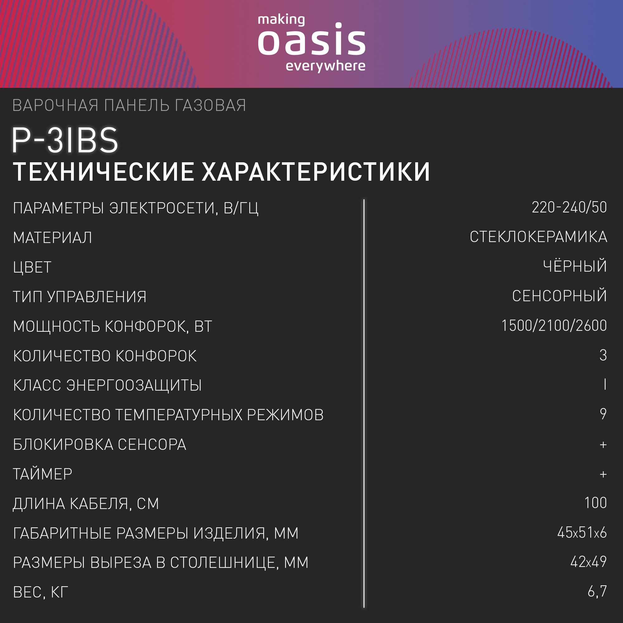 Встраиваемая варочная поверхность Oasis P-3IBS