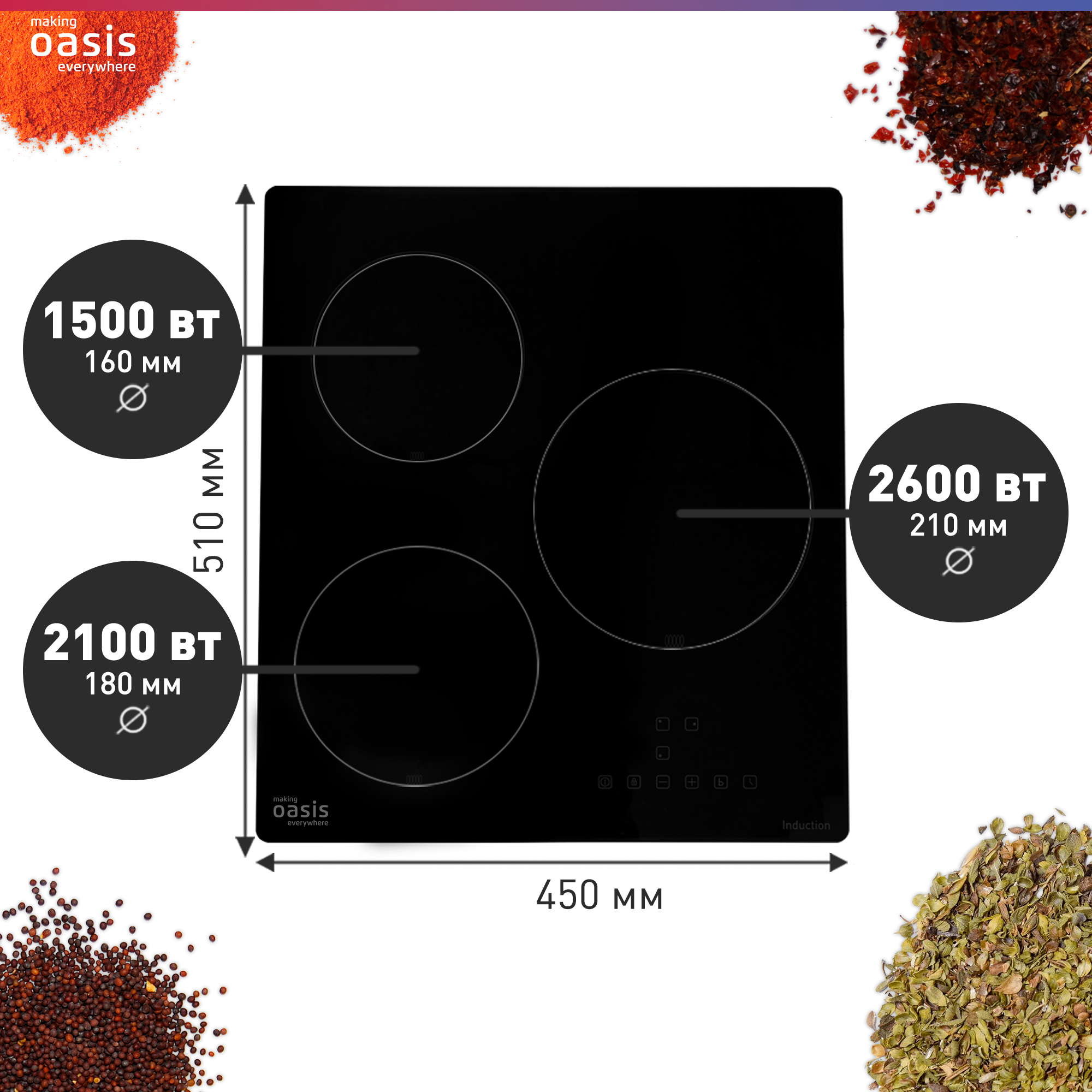 Варочная панель Oasis P-3IBS, электрическая, сенсорное управление, черная, стеклокерамика