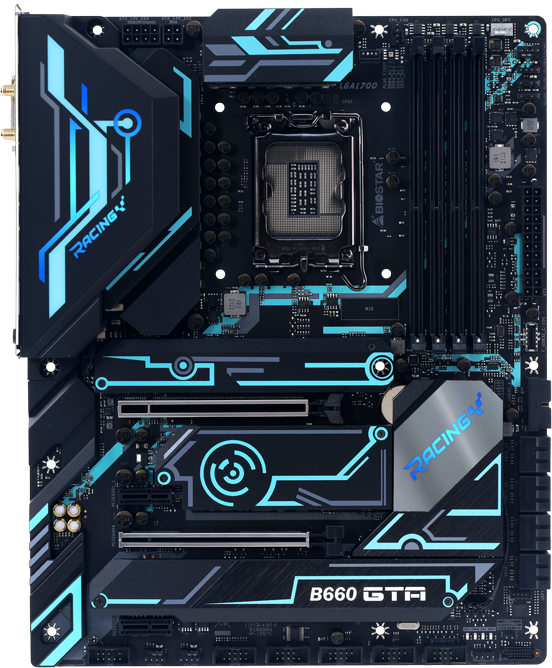 Купить Материнская плата Biostar B660GTA Socket 1700, Intel B660, 4xDDR4, PCI-E 5.0, PCI-E 4.0, 2500 Мбит/с, 5xUSB 3.2 Gen2, USB 3.2 Gen2 Type-C, DVI, HDMI, DisplayPort, подсветка, ATX