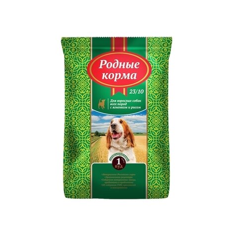 Родные корма 23/10 1 пуд 16,38 кг сухой корм для взрослых собак ягненок с рисом