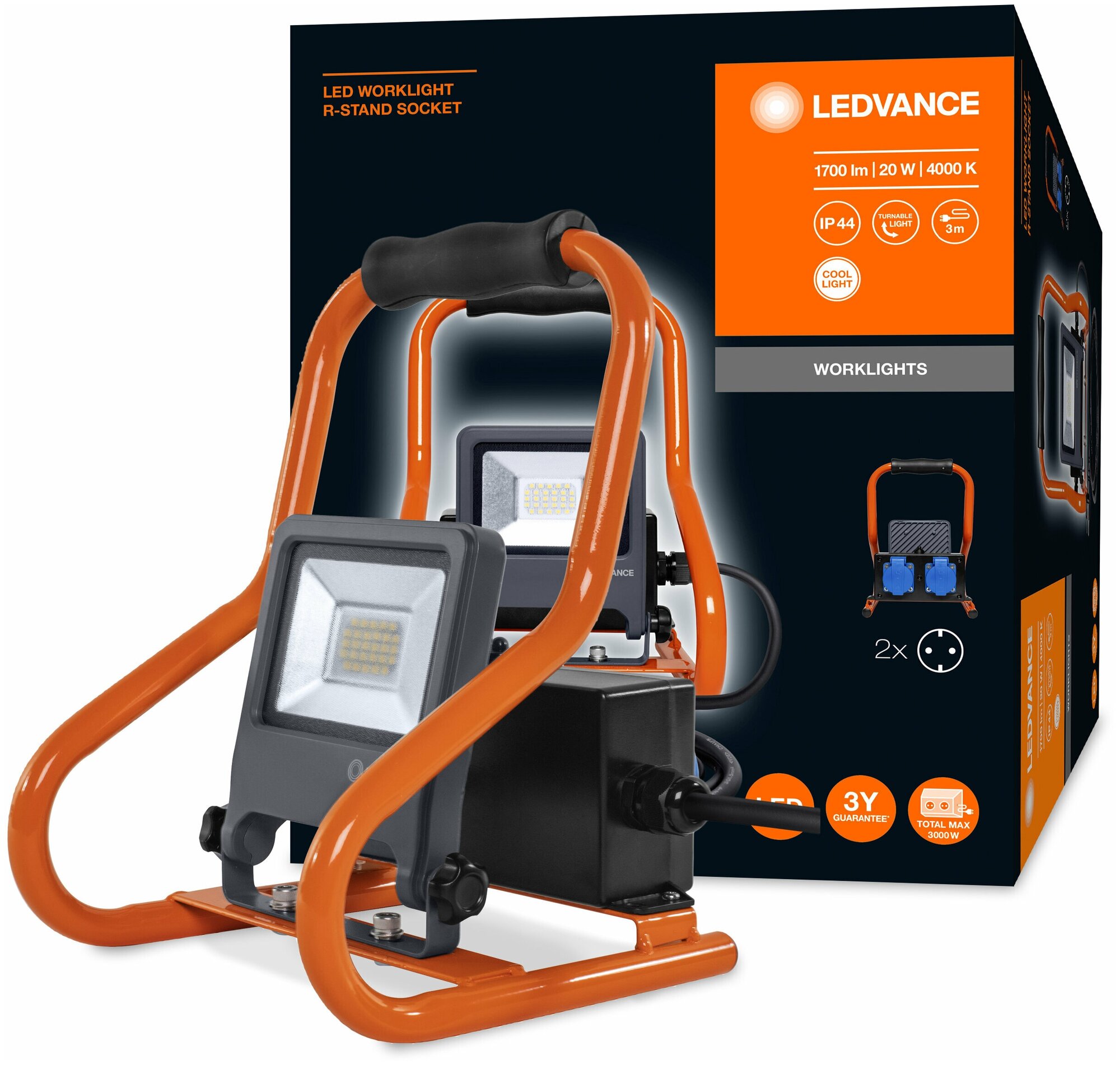 Купить LED WORKLIGHT 20W 840 R-STANDSOCKET IP44 - прож-тор переноска+2 розетки LEDV