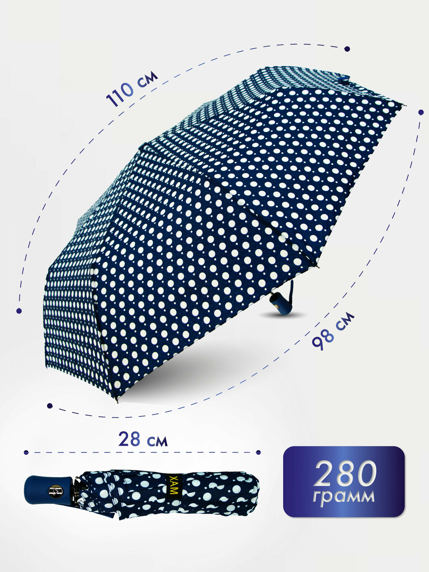 Женский складной зонт MAX UMBRELLA полуавтомат 163/темно-синий