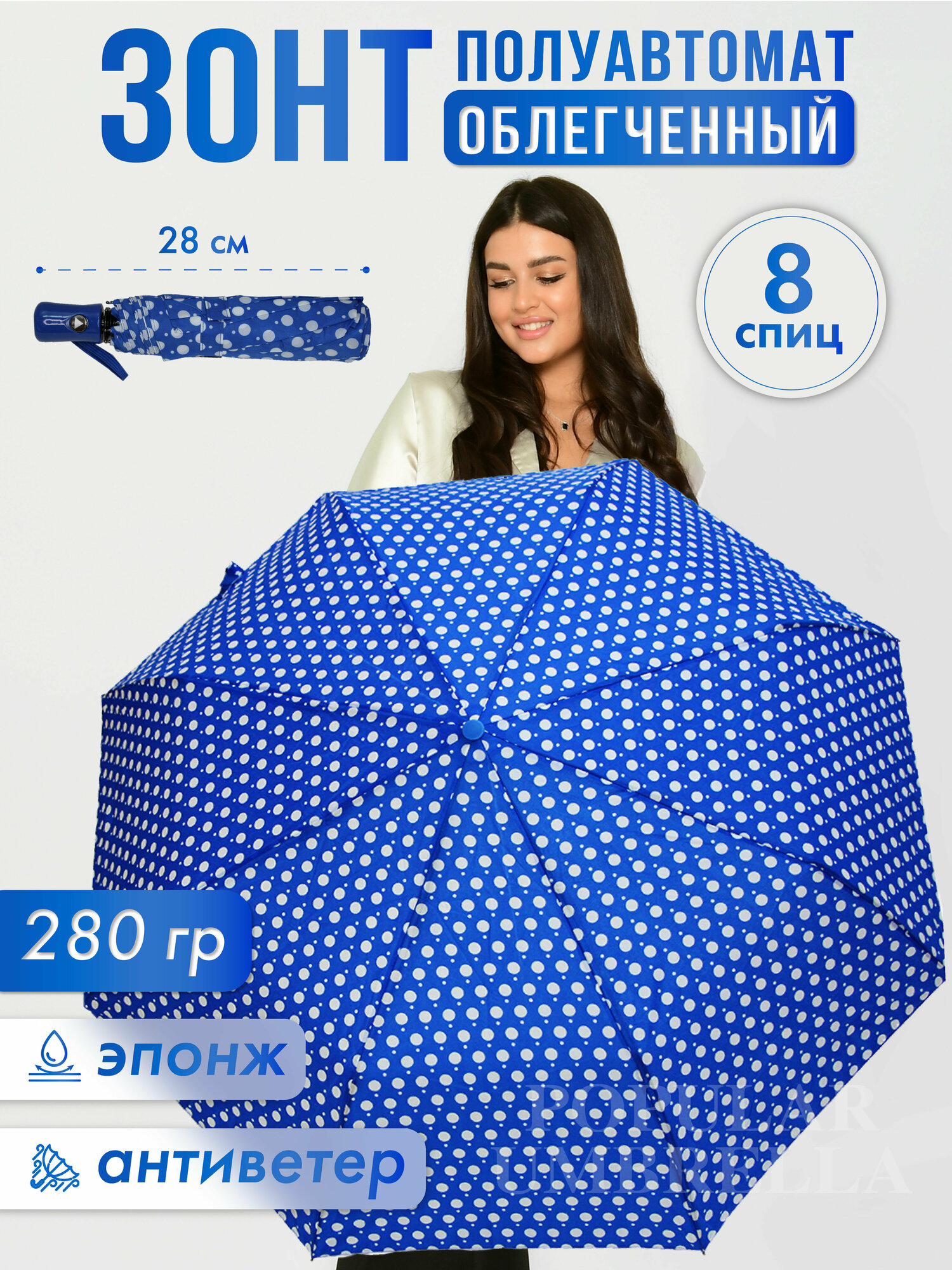 СохранитьЗонт женский полуавтомат антиветер, зонтик взрослый складной 163, синий интересное: