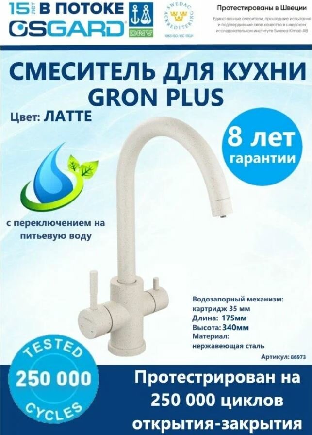 Смеситель для кухни Osgard 86973 Gron Plus Смеситель для кухни, с переключателем на питьевую воду с выделенным каналом, латте