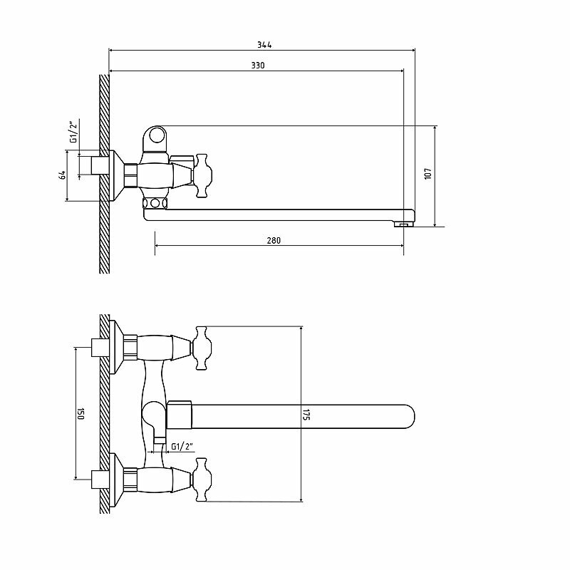 Смеситель для ванны Osgard Roxen 71236, двухвентильный, с лейкой и шлангом, длинный излив Osgard 293 .