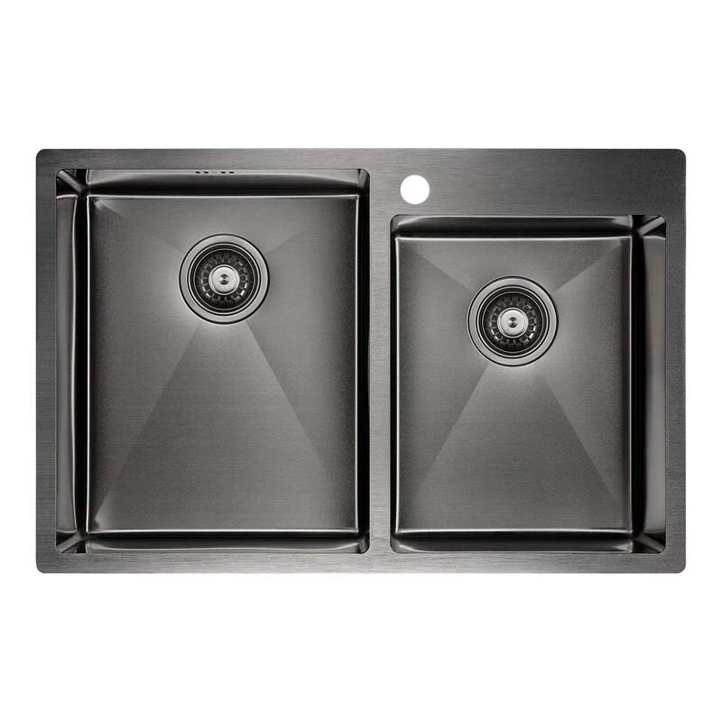 Мойка для кухни 78х51 Paulmark HELFER двойная воронёная сталь PM237851-GM