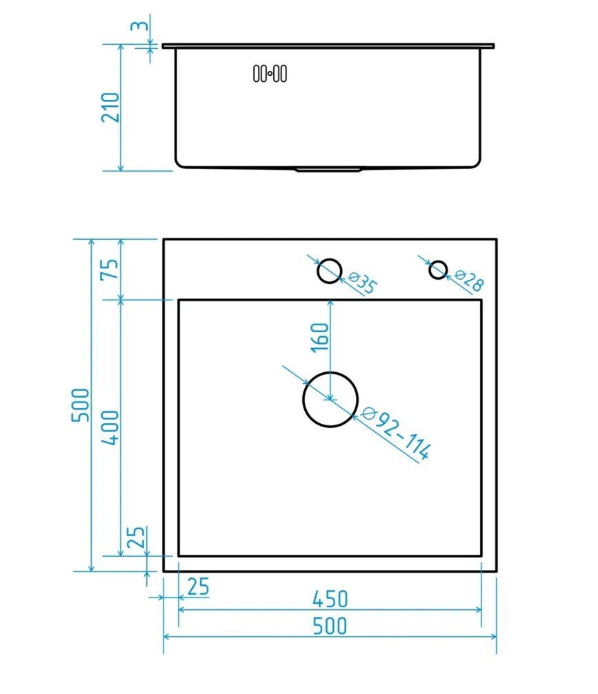 Мойка из нержавеющей стали SIRIUSLINE Premium 50х50 (в комплекте с коландером, врезным дозатором, и сифоном) толщина стали 3 мм интересное: