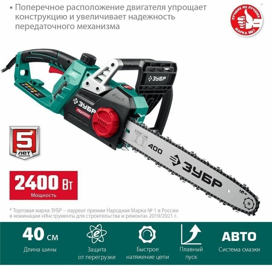 ЗУБР 2400 Вт, 40 см шина, пила цепная электрическая ПЦ-2440
