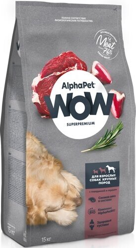 Купить Корм сухой ALPHAPET WOW Superpremium полнорационный для взрослых собак крупных пород (с говядиной и сердцем) 15кг
