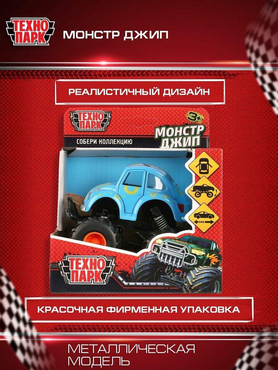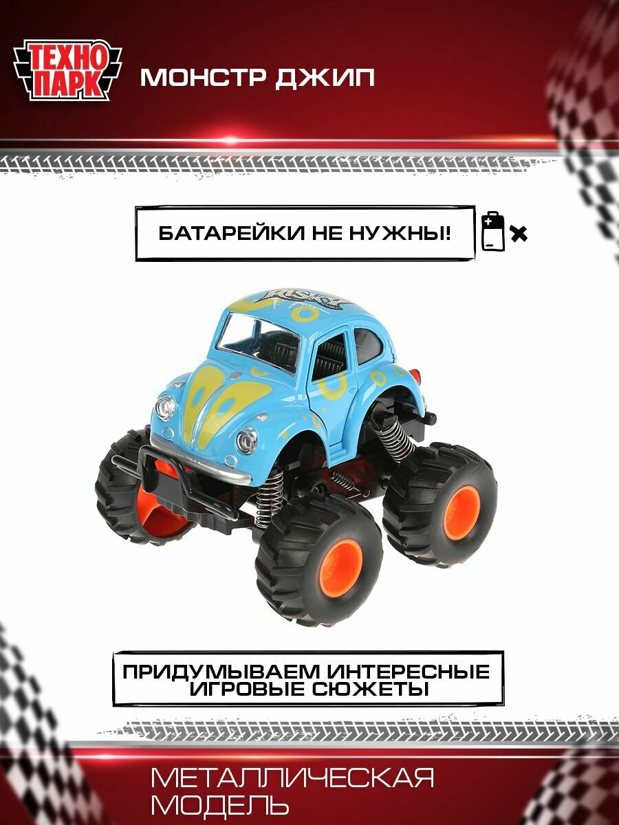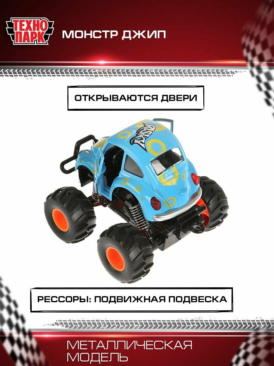 Машина металл Технопарк, монстр джип 11,5см, синий открываются двер, рессоры, инерционный