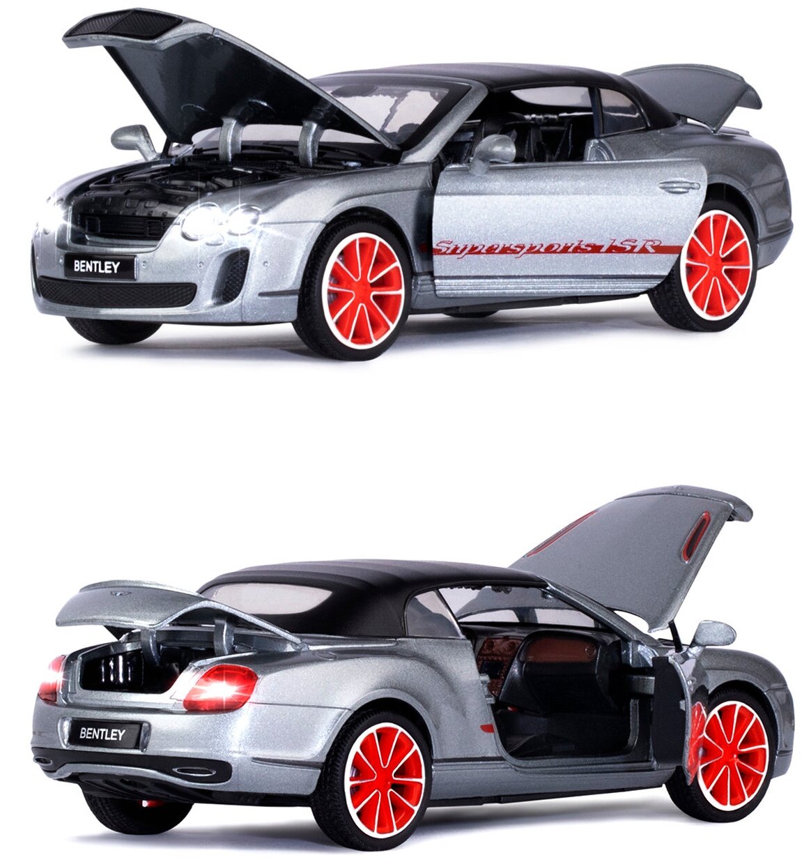 Модель машины Автопанорама 1:24 Bentley Continental Supersports ISR, серый металлик, открываются двери, капот и багажник, свет, звук