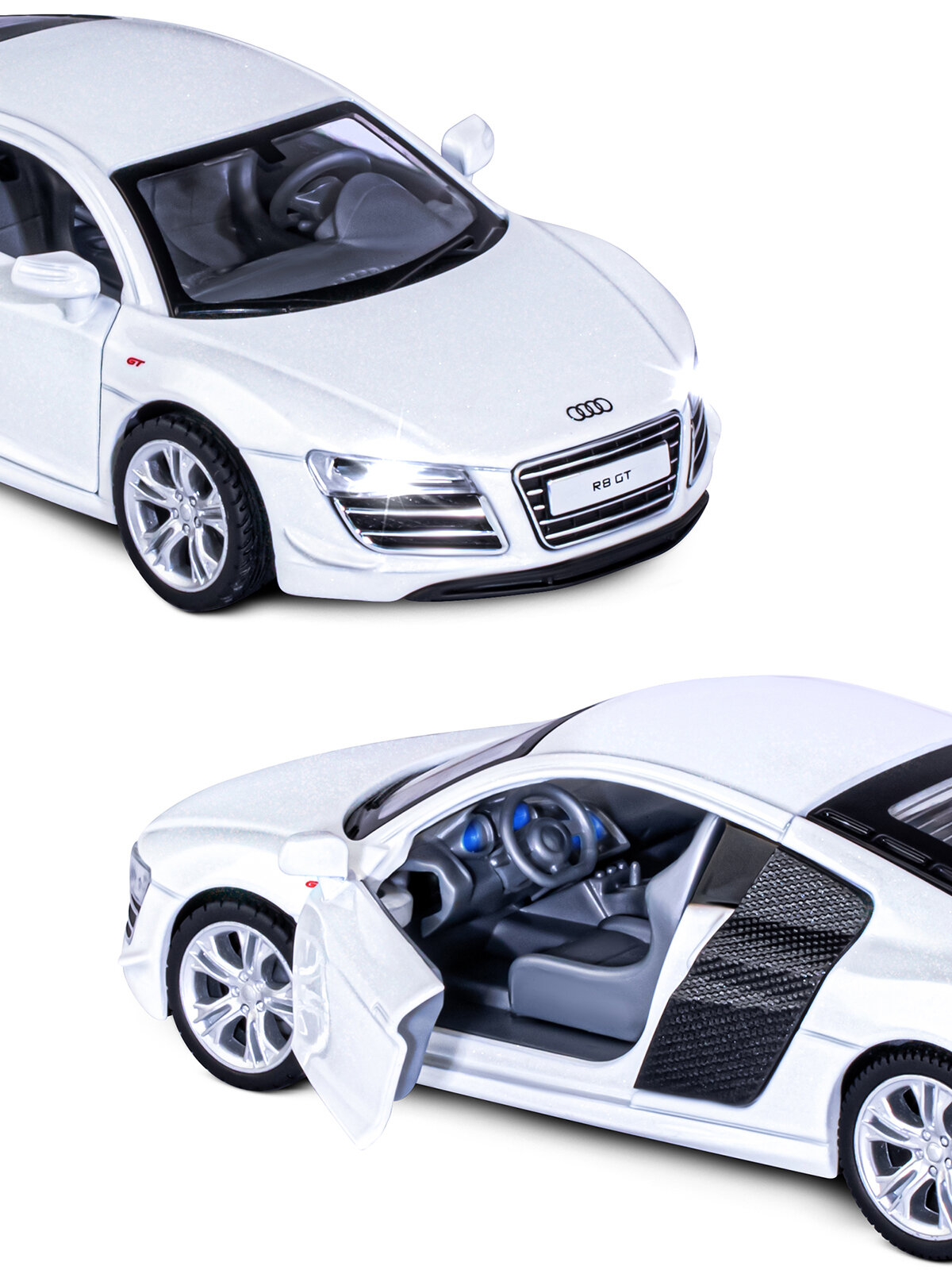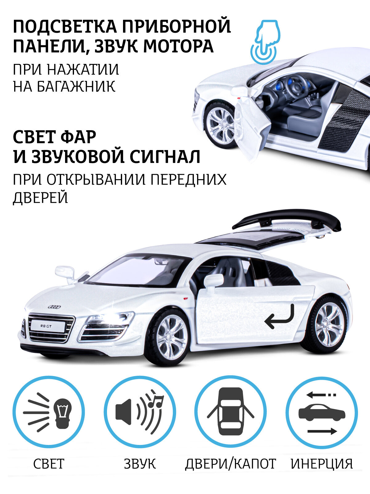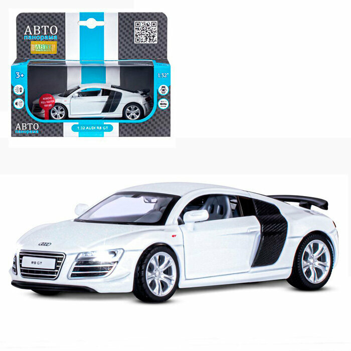 Машинка металлическая Автопанорама 1:32, Audi R8 GT, белый, инерция, свет, звук, открываются двери (JB1251310)