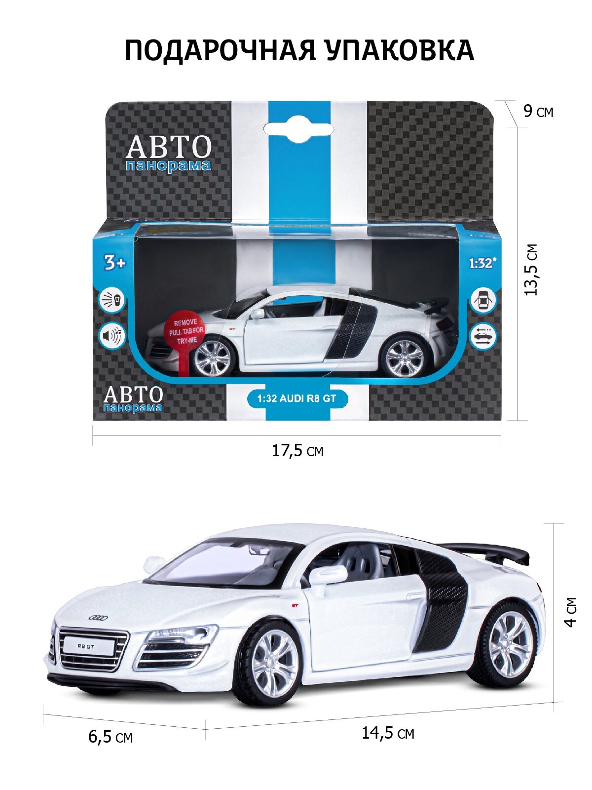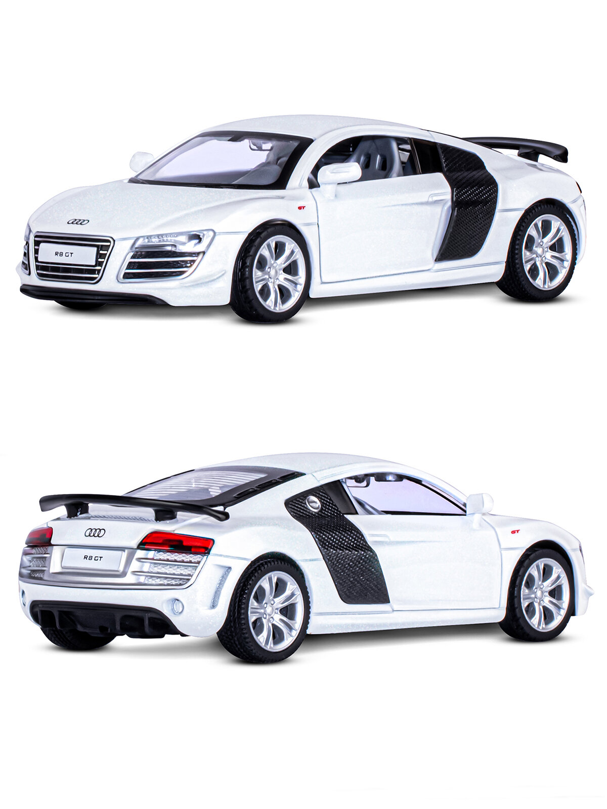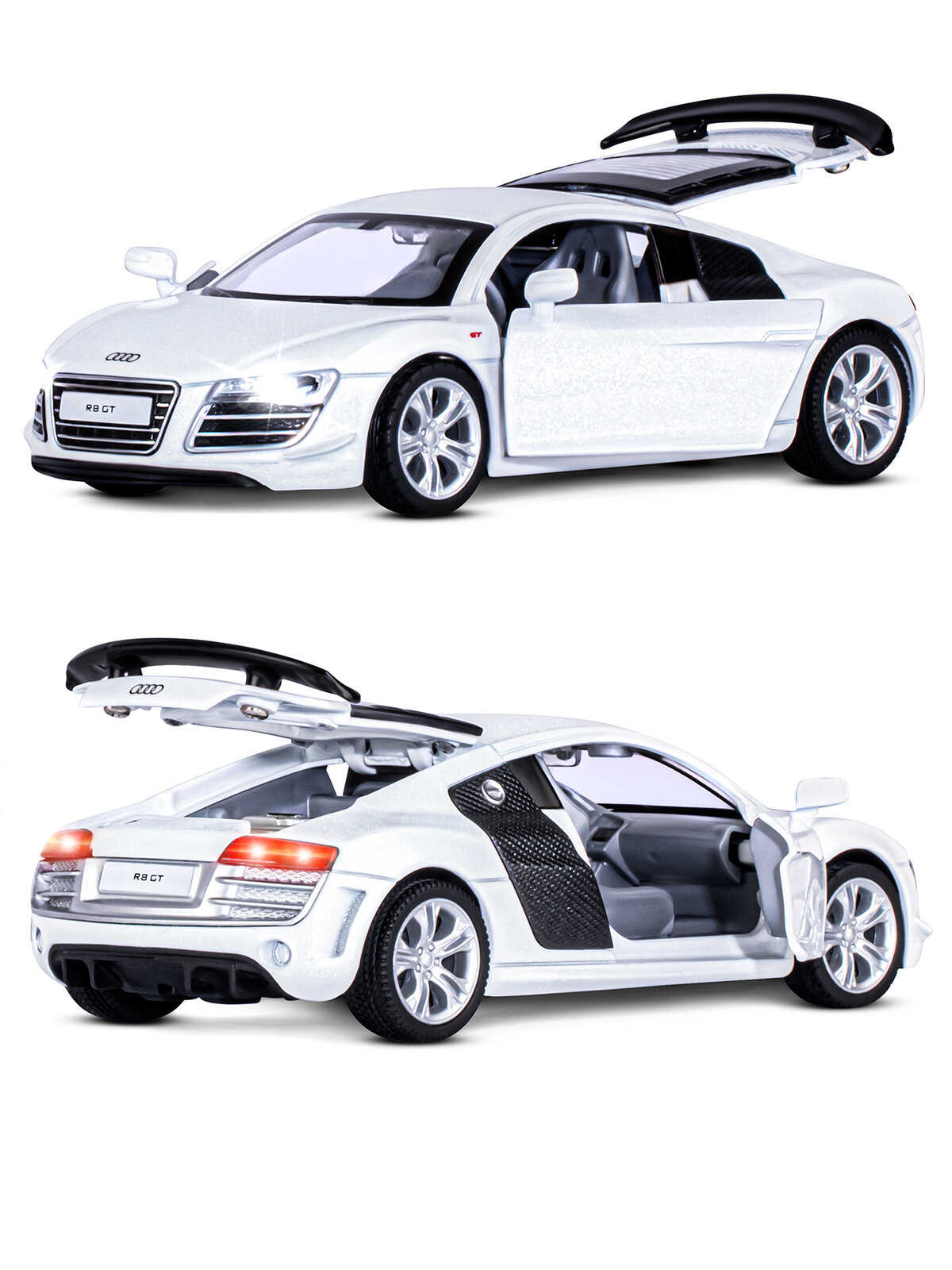 Машинка металлическая Автопанорама 1:32, Audi R8 GT, белый, инерция, свет, звук, открываются двери (JB1251310)