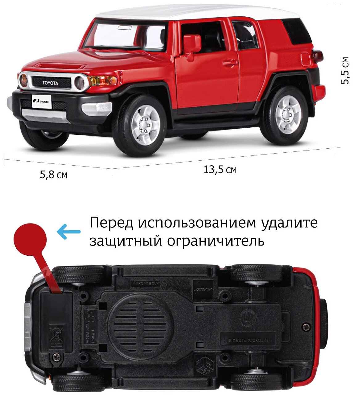 Масштабная модель Автопанорама JB1251289 Toyota FJ Cruiser красный свет звук 1:32