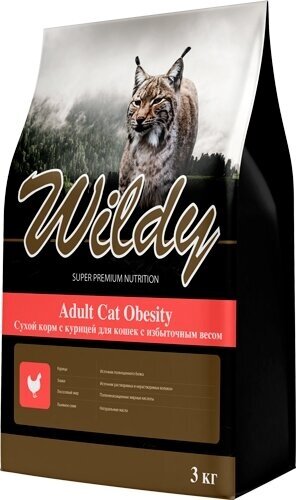Сухой корм для кошек Wildy Adult Cat Obesity, с избыточным весом, с курицей 3 кг