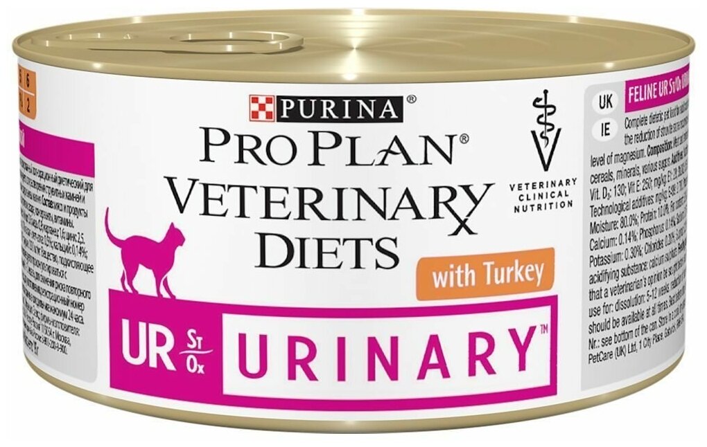 Влажный корм для кошек Pro Plan Veterinary Diets UR Urinary, для лечения МКБ, с индейкой 195 г интересное: