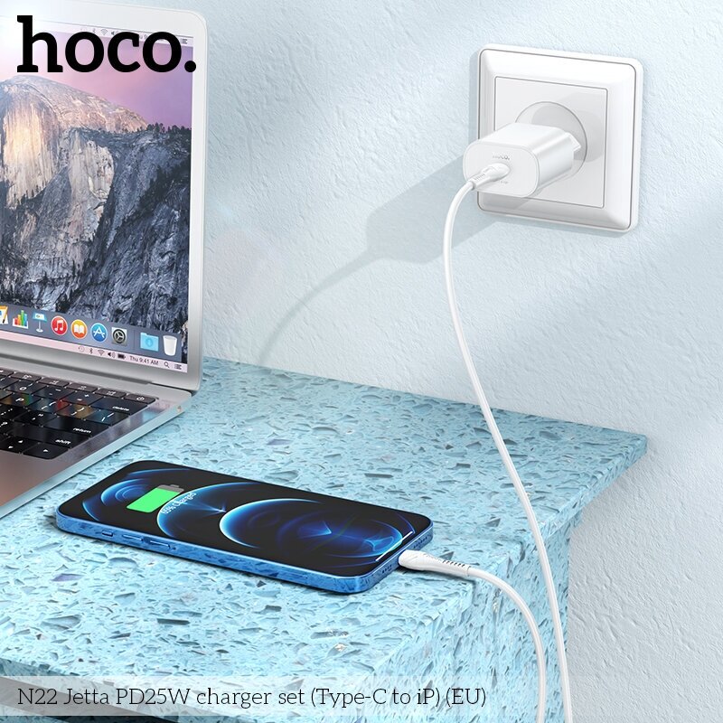 Купить СЗУ Hoco N22 Jetta (PD25W), с кабелем Type-C/Lightning, белый