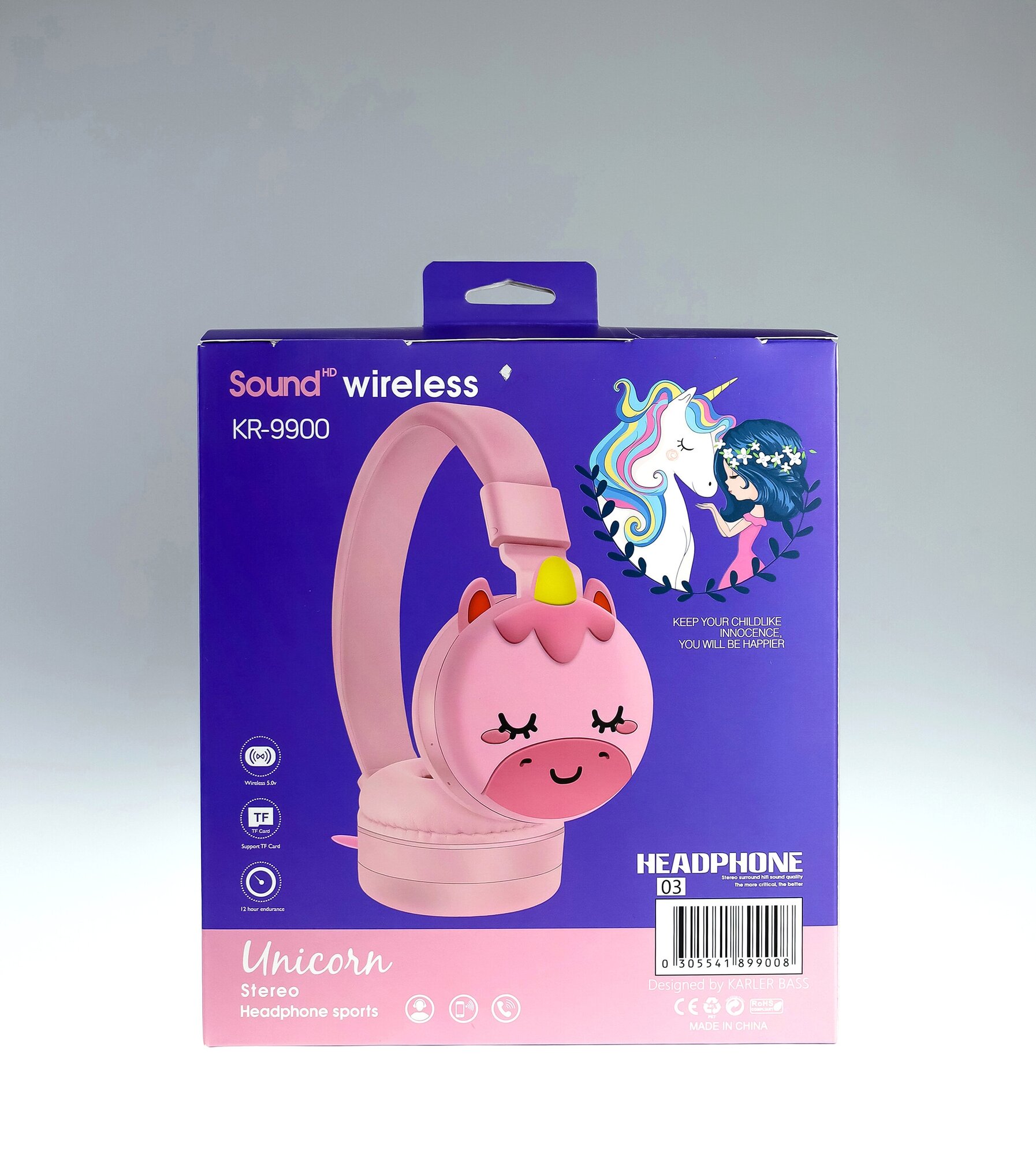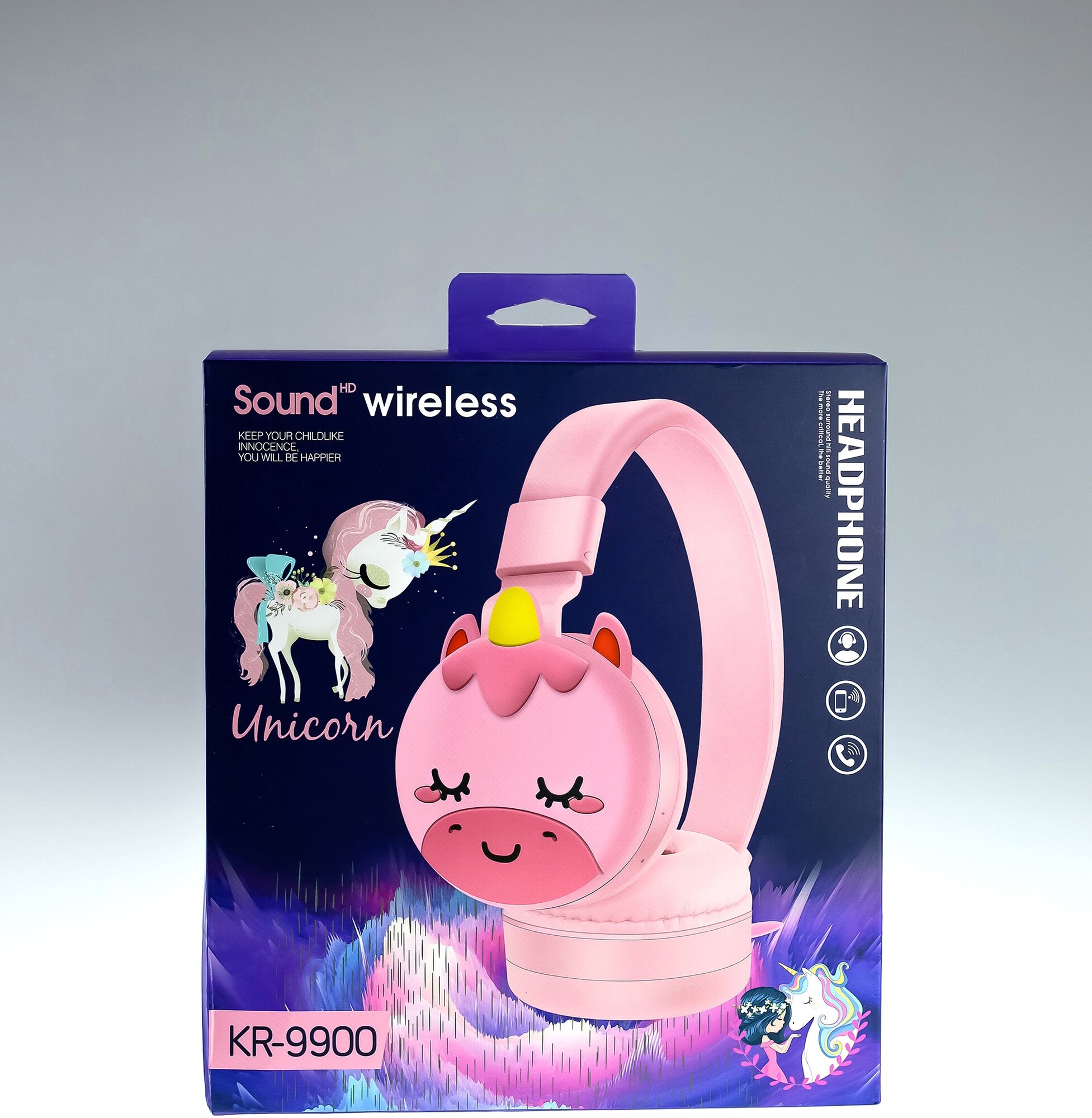 Купить Наушники детские беспроводные, Единорог KR-9900, Bluetooth 5.0, полноразмерные, накладные с микрофоном, розовые