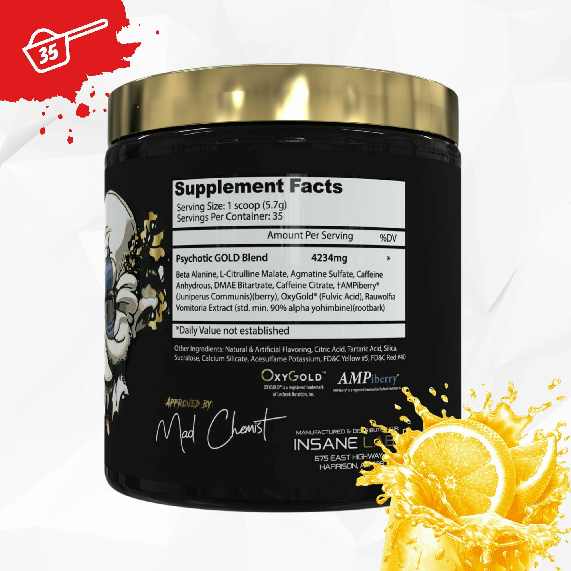 Предтренировочный комплекс Insane Labz Psychotic Gold 35 порций (Апельсин)