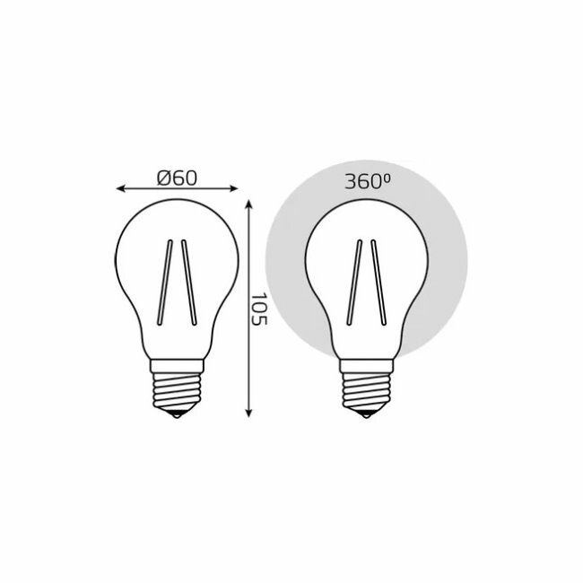 Лампа Gauss Filament А60, 15W, 1450lm, 4100К, Е27, LED, 1/10/40 102902215