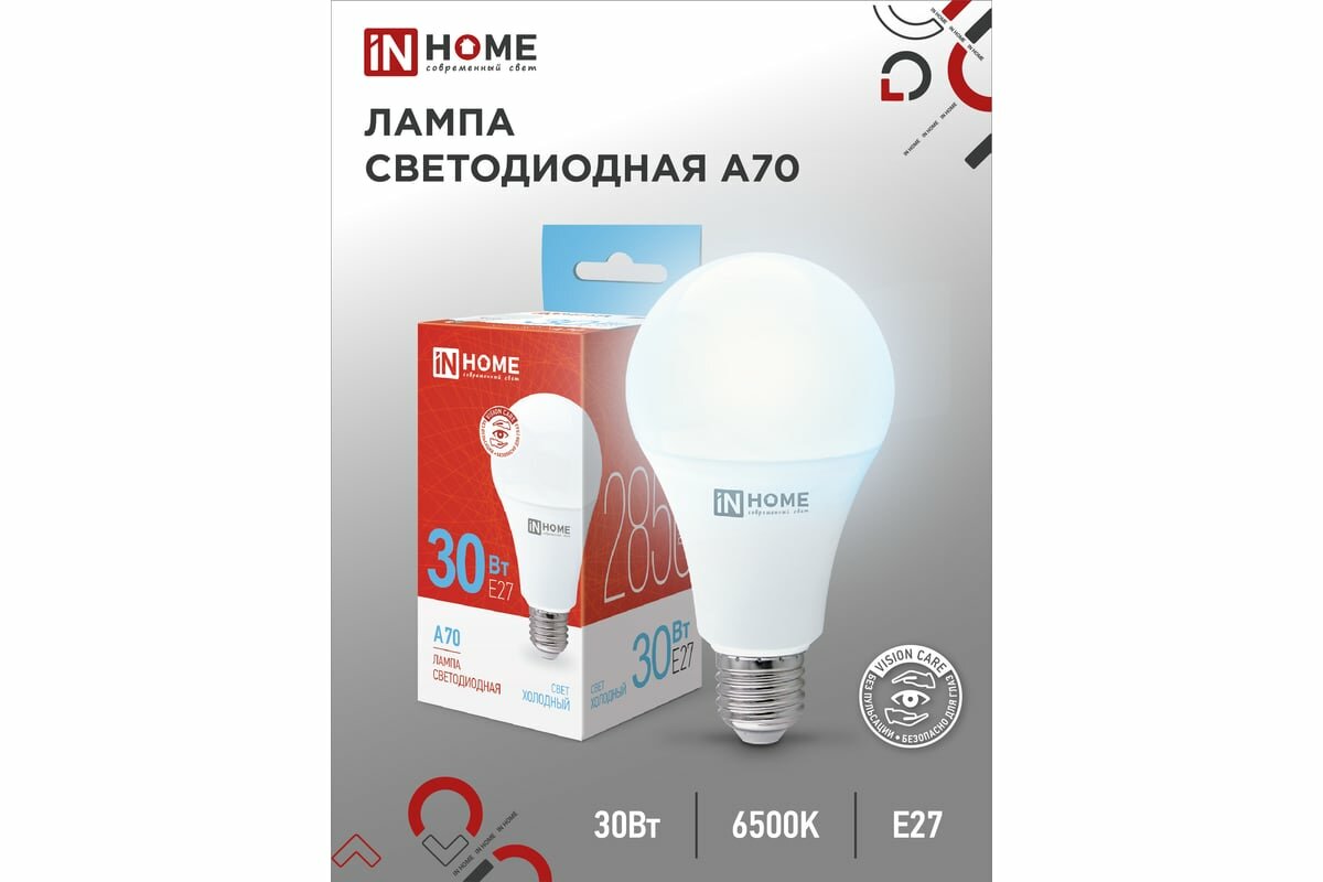Купить INhome Лампа светодиодная IN HOME LED-A70-VC, Е27, 30 Вт, 230 В, 6500 К, 2850 Лм