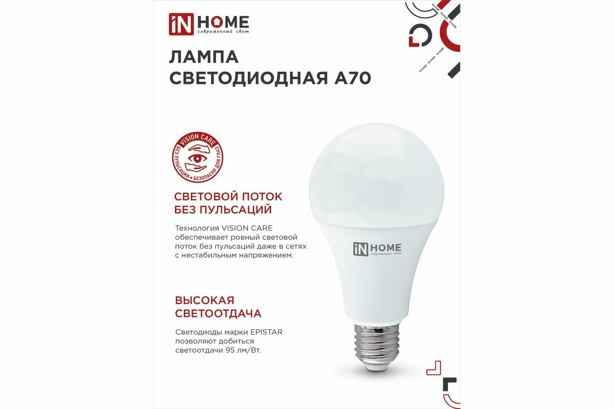 Лампа светодиодная IN HOME LED-VC 4690612024165, E27, A70, 30 Вт, 6500 К