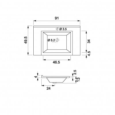 | Число размеченных отверстий под смеситель | отсутствуют |