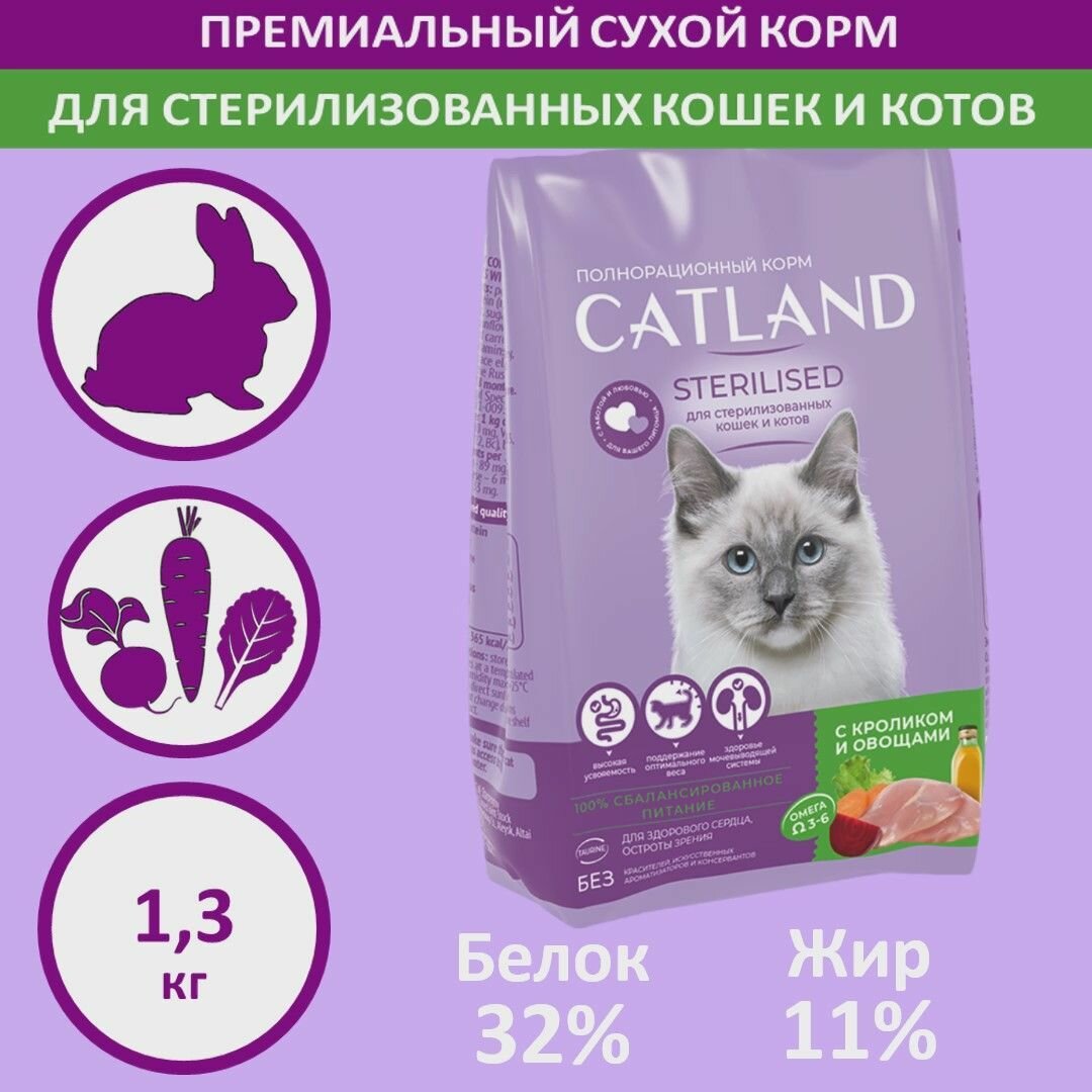 Сухой корм "CATLAND" (1,3 кг х 1 шт) для стерилизованных кошек и котов с кроликом и овощами/ Оптом/ Холистик/ Мираторг
