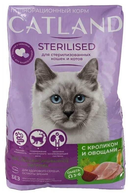 Сухой корм для стерилизованных кошек Catland с кроликом и овощами, 1,3 кг интересное: