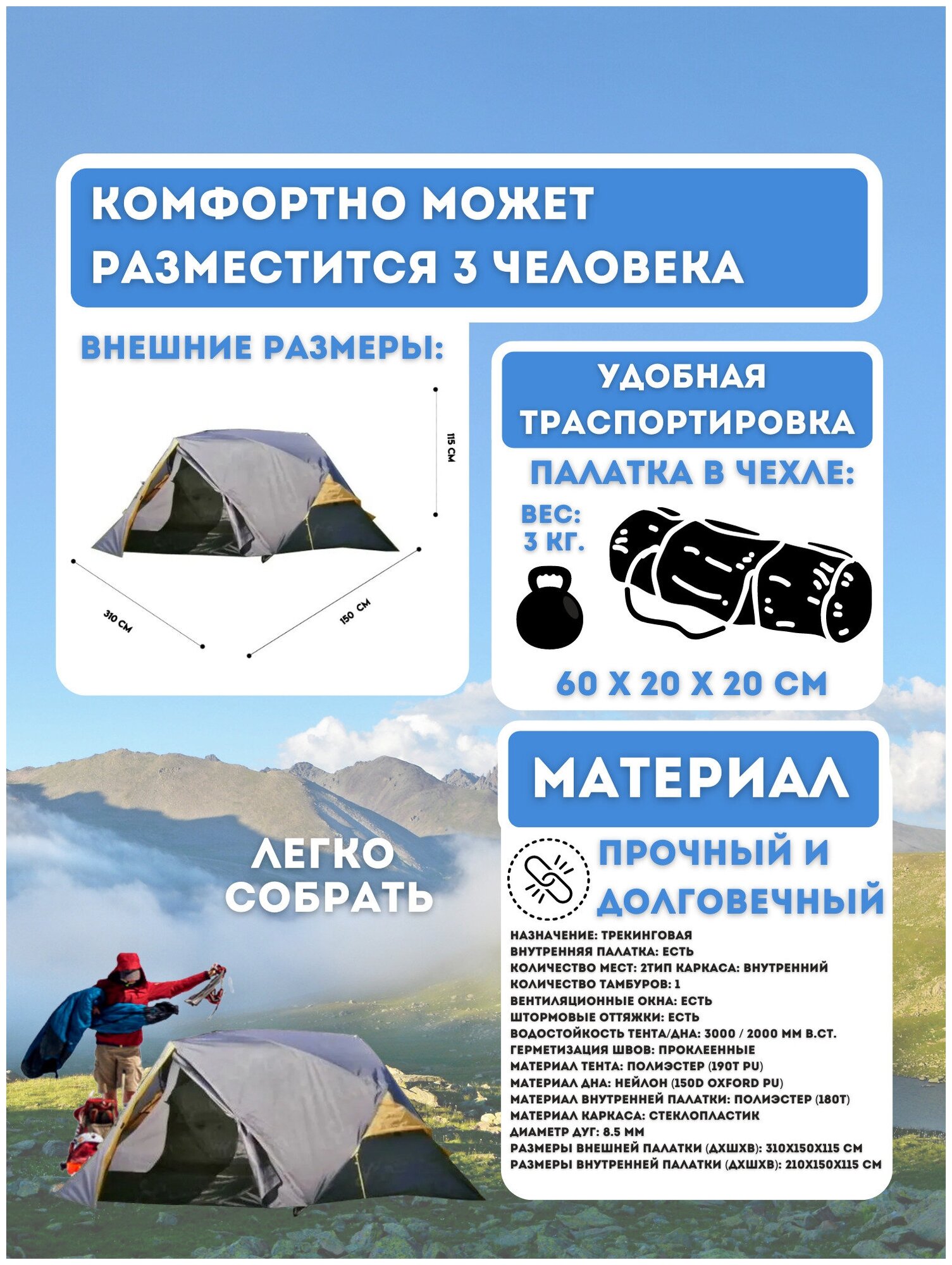 | Длина внутренней палатки | 310 см |