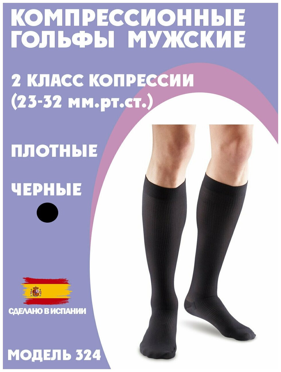 Гольфы компрессионные для мужчин 323 Orto 2 класс, черные, Нормальное, L