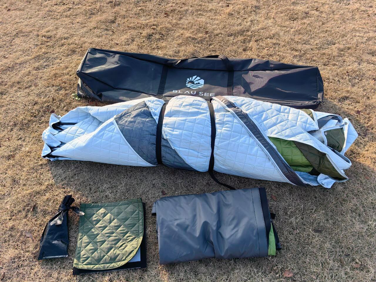 | Материал тента | хлопок + полиэстер (водонепроницаемый оксфорд (420D) + утеплитель акупунктурный хлопок (искусственный хлопок) (180GSM) + оксфорд (210D)) |
