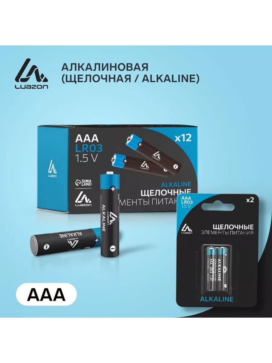 Батарейка алкалиновая (щелочная) LuazON, AAA, LR03, блистер, 2 шт./В упаковке шт: 1